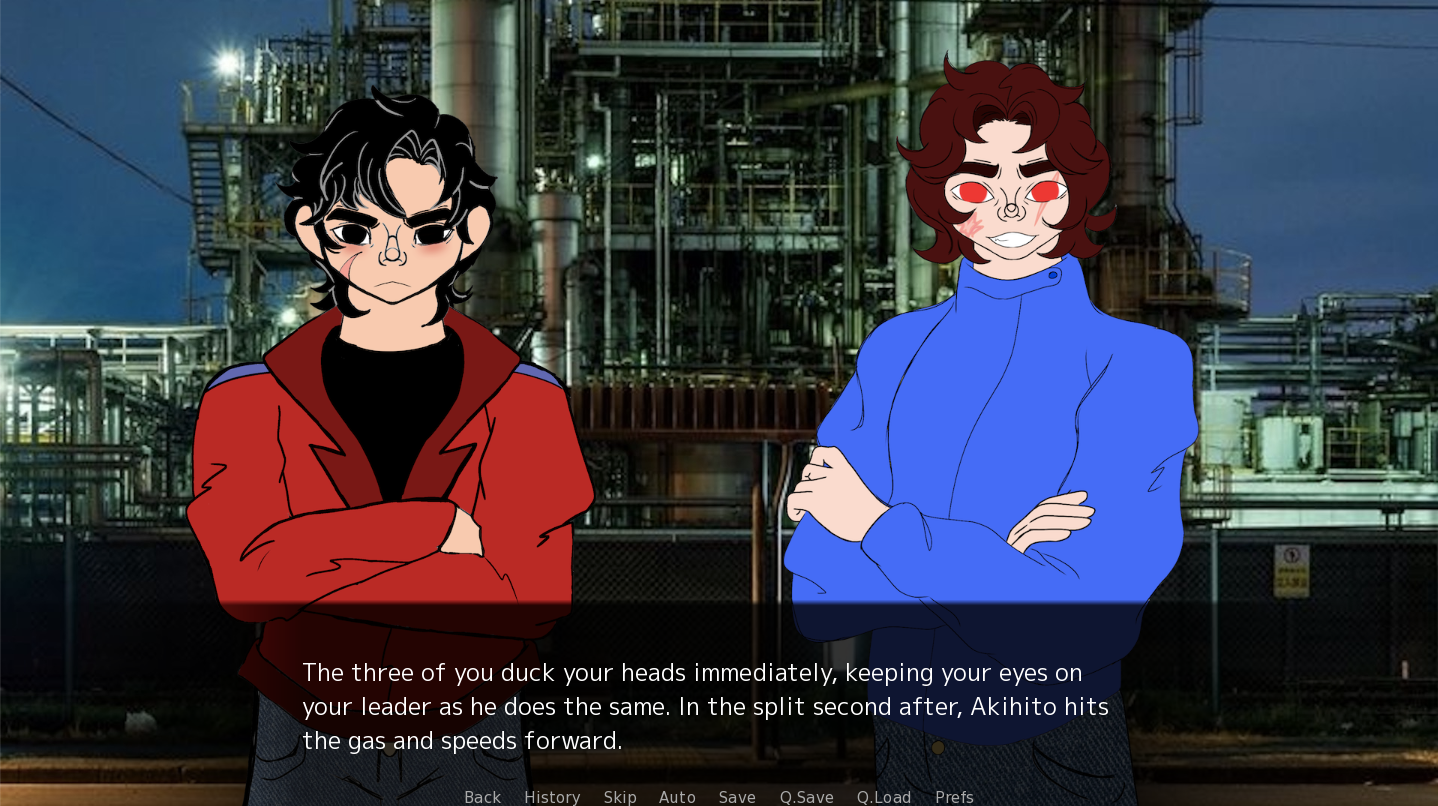 This game contains narrative elements involving drugs and violence, and so is recommended for a mature audience. These aspects of Bōsōzoku's story also manifest in visible blood and gunshot sound effects.