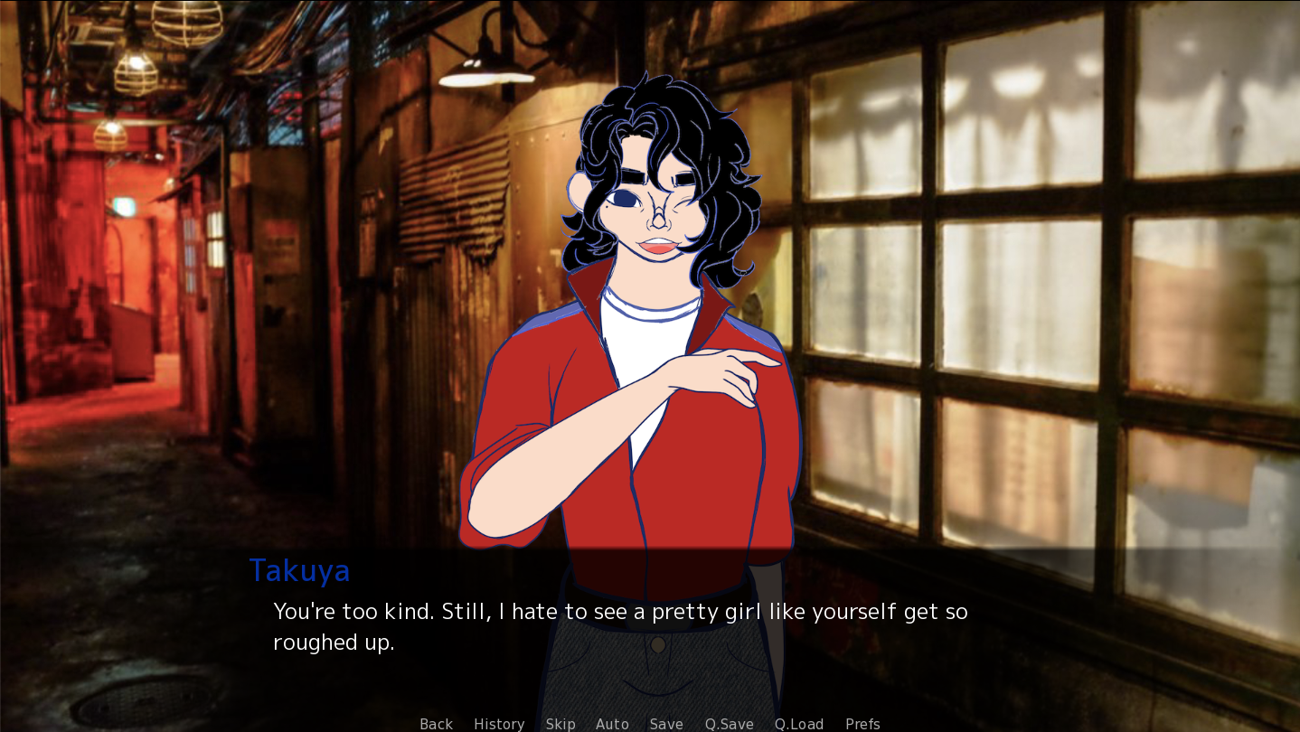 Bōsōzoku strives to immerse you in a narrative that is equal parts romance and mystery. In both, you will have the added help of three love interests, though which you choose, as well as the individual decisions you make in their respective storylines, will affect how your relationship evolves and which truths you unveil. It’s a mature story that does not shy away from drugs, guns, or visual blood, while also giving plenty of spotlight to the unique dynamic you choose to have with the world around you. It includes:
